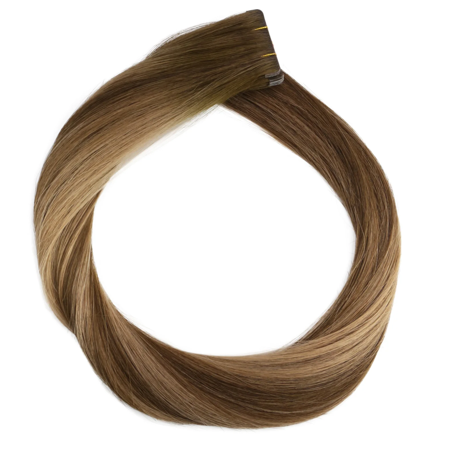 Cuticles Intact Invisi Tape in Hair Extensions Swedish Amber (Balayage Almond Brown), especially for Salon Usage. Hair lasts 9-12 months. 6 months Quality Guarantee!