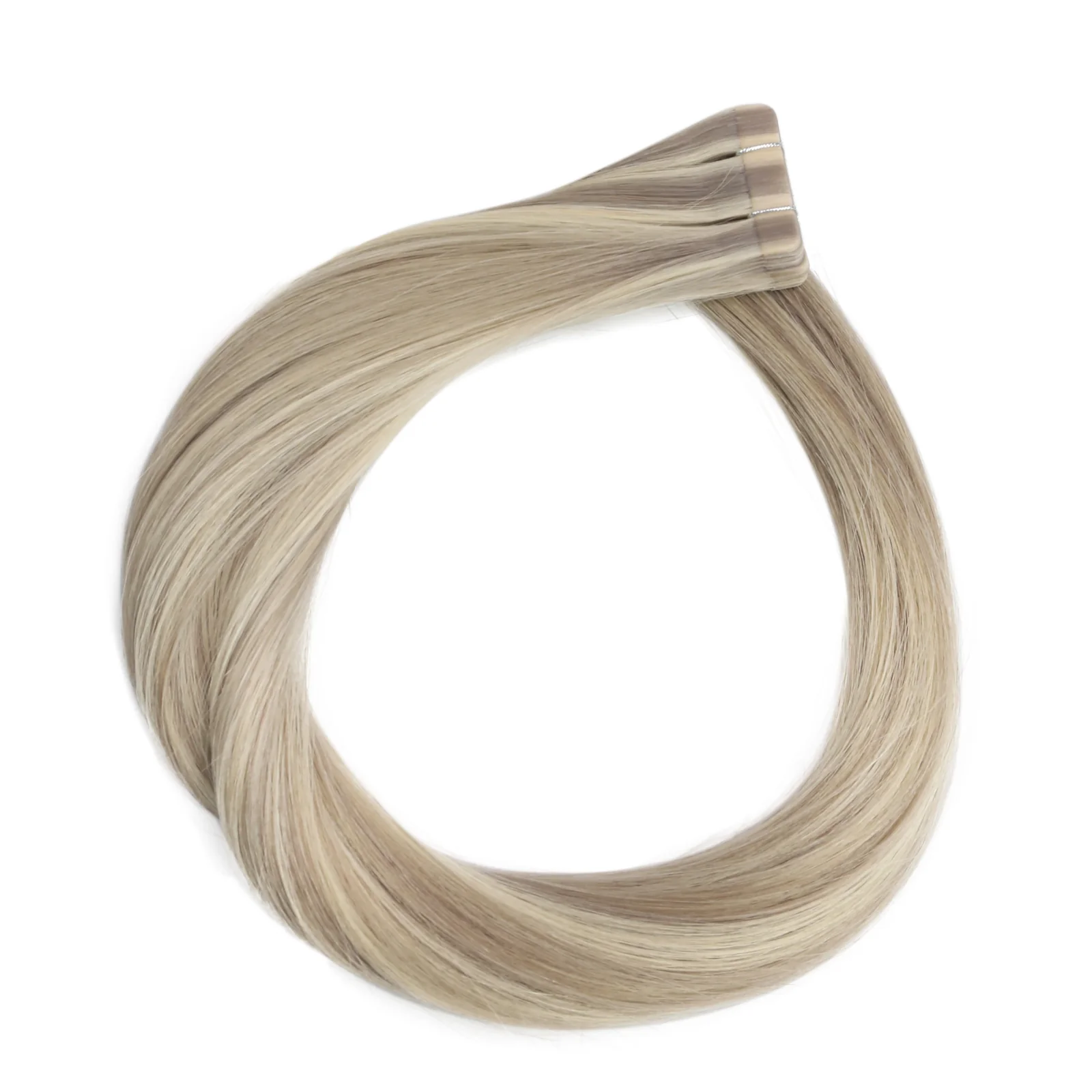 Cuticles Intact Tape in Hair Extensions Norwegian Satin (Highlight Platinum Blonde), especially for Salon Usage. Hair lasts 9-12 months. 6 months Quality Guarantee!